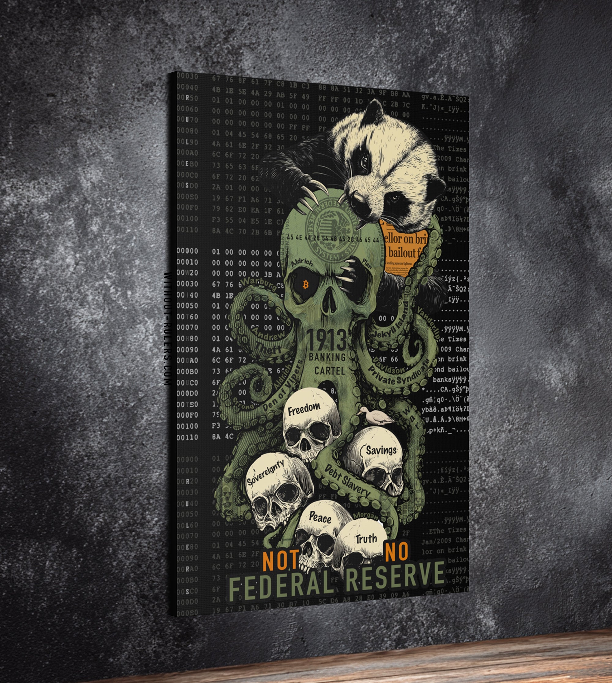 Printed on durable polyester with vivid inks, the piece arrives ready to mount with a black-backed frame and built-in hanger. It fits into curated living spaces, studios, or home offices where bold commentary and conversation-starting visuals belong. Hang it vertically or anchor a gallery wall or let it stand alone above a desk to set an unmistakable mood for gatherings, late-night work sessions, or themed decor displays.